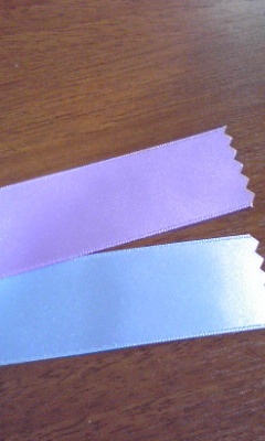 リボンの色は購入店、個々のイメージによって違いがあると思いますが、当日お持ちになるバッグに付けて映える紫と水色にしていただきたいです。